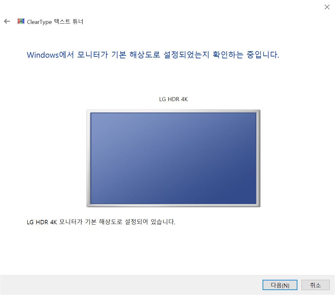 3. 그러면 ClearType에서 모니터의 종류를 식별하고 해상도를 검사하게 됩니다. 그리고 다음을 클릭!